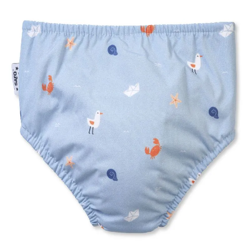 - Protección Total: Con su tejido resistente al agua, el Bañador Pañal Saro sustituye al pañal durante el baño, evitando fugas y manteniendo a tu pequeño cómodo y protegido.