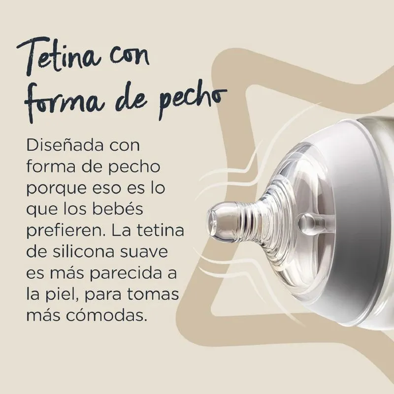 Inspiradas en el pecho materno, las tetinas facilitan la transición entre la lactancia y el biberón, con una forma que imita la flexión, el movimiento y la suavidad del pecho de la madre. Este diseño ayuda a que tu bebé se sienta más cómodo y reduzca la confusión entre el pecho y el biberón.