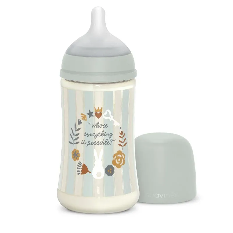 Características De Biberón Poliamida 270ml Flujo M Wonderland Rayas - Azul