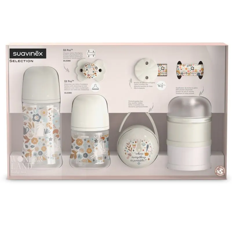 El Welcome Baby Set Wonderland de Suavinex en color Liberty Beige es un conjunto completo y especial, diseñado para dar la bienvenida a tu bebé con los mejores productos de la colección Wonderland.