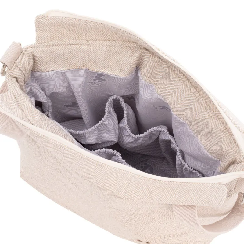 El bolso Talega de Cambrass, es un bolso con unas medidas perfectas tanto para transportar la mamá como para colgar al carro, lleva 2 tipo de asas, bandolera y para el carro. Made in Spain.