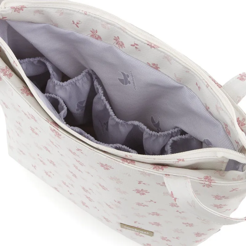 El bolso Talega de Cambrass, es un bolso con unas medidas perfectas tanto para transportar la mamá como para colgar al carro, lleva 2 tipo de asas, bandolera y para el carro. Made in Spain.