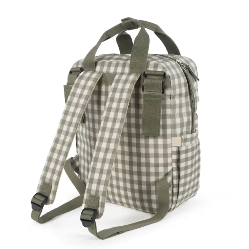 Una bolsa canastilla y mochila al mismo tiempo, muy moderna y urbana, ideal para llevar tus cosas y las de tu bebé, con mucho estilo, a todos sus paseos. La bolsa Caetana diseño de cuadros para silla de paseo es un modelo multifunción muy ligero, resistente y de gran capacidad para llevar todo lo necesario en el paseo del bebé.