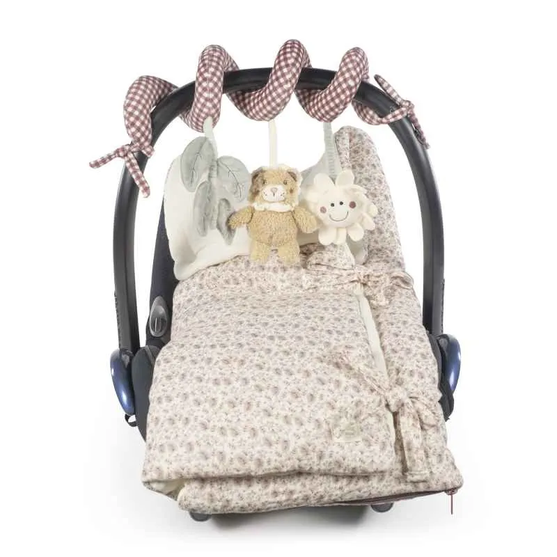 Su forma en espiral permite colocarlo fácilmente en el cochecito, la cuna o la silla del auto, asegurando un ajuste firme y estable.