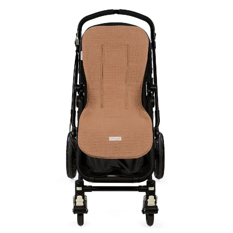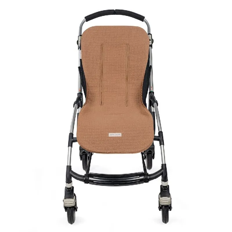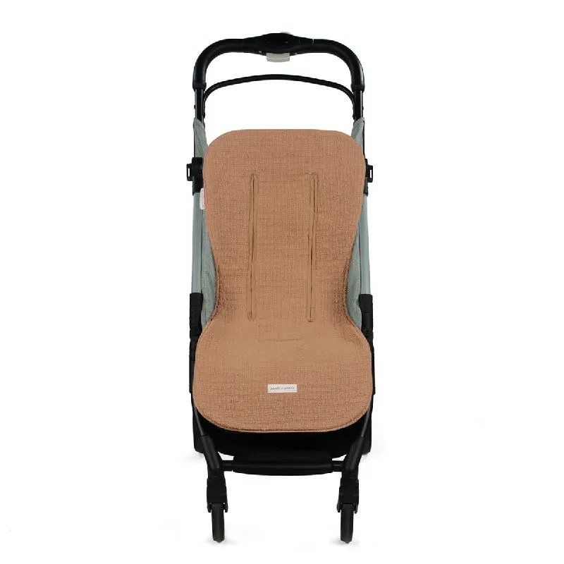 Colchoneta de verano Icon en color Caramel, fabricada en tejido 100% algodón, ideal para adaptarse a la mayoría de las sillas de paseo y proporcionar comodidad durante los paseos en días calurosos.