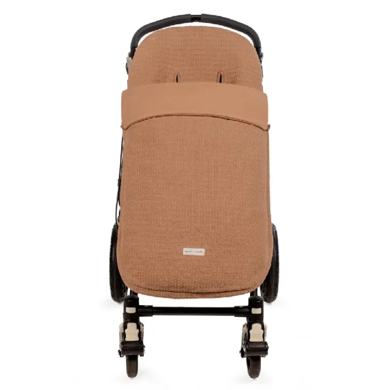 Saco para silla de entretiempo en color Caramel, fabricado en tejido leno y bambula muy suave, con trasera anti-sudoración y relleno de fibra hueca extraíble.