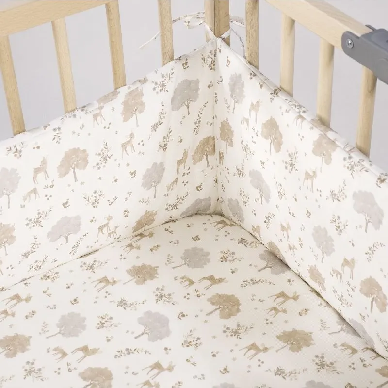 Diseño inspirado en la naturaleza, con estampado de ciervos y árboles en tonos neutros, ideal para cualquier decoración infantil.