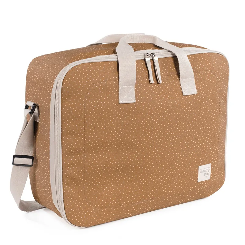La maleta de bebé Poppy Canela de topitos es el complemento ideal para el gran día de la llegada del bebé. Diseñada para ofrecer practicidad, espacio y estilo, permite organizar con facilidad todo lo necesario para la madre, el padre y el recién nacido. Su diseño funcional y materiales de alta calidad la convierten en una opción cómoda y resistente para cualquier ocasión.