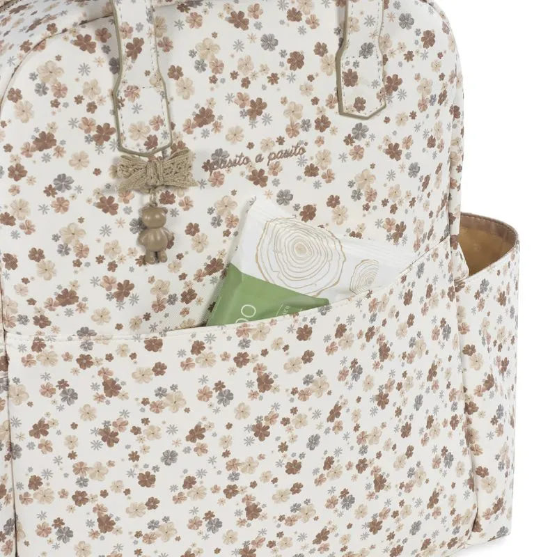 La Mochila Somerset está diseñada para combinar estilo y funcionalidad, ofreciéndote todo lo que necesitas para salir de casa con tu bebé. Fabricada en polipiel estampada de flores, esta mochila cuenta con una gran capacidad y múltiples compartimentos para mantener todo organizado. Tanto si la llevas colgada a la espalda como en el carrito del bebé, tendrás todo a mano de manera práctica y ordenada.