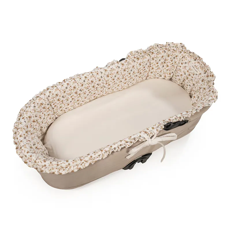 El cubre cuco con varillas y sábana bajera ajustable Somerset de Pasito a Pasito combina elegancia, suavidad y practicidad para ofrecer el máximo confort al bebé. Con un delicado diseño floral y materiales de alta calidad, este conjunto es ideal para mantener el capazo siempre bonito y acogedor.