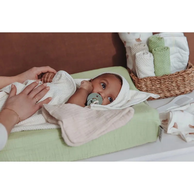 Capa de baño fabricada en Portugal con rizo exclusivo de algodón 100 %, diseñada para secar y proteger la delicada piel del bebé. Su textura ultra suave y gran capacidad de absorción garantizan máximo confort después...