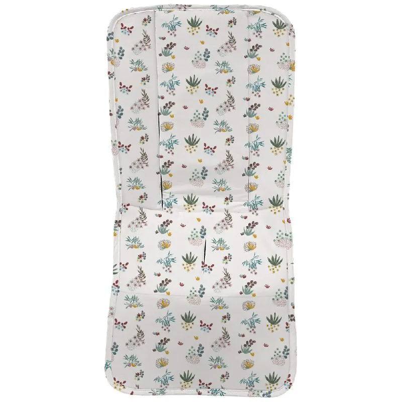 La parte trasera inferior de tipo elástico asegura un ajuste firme a la silla. El relleno de microfibra prensada ofrece confort y comodidad para el bebé durante todo el paseo, mientras que el tejido posterior de rejilla de mucha consistencia evita que se aplaste con el peso del bebé y permite una ventilación real.