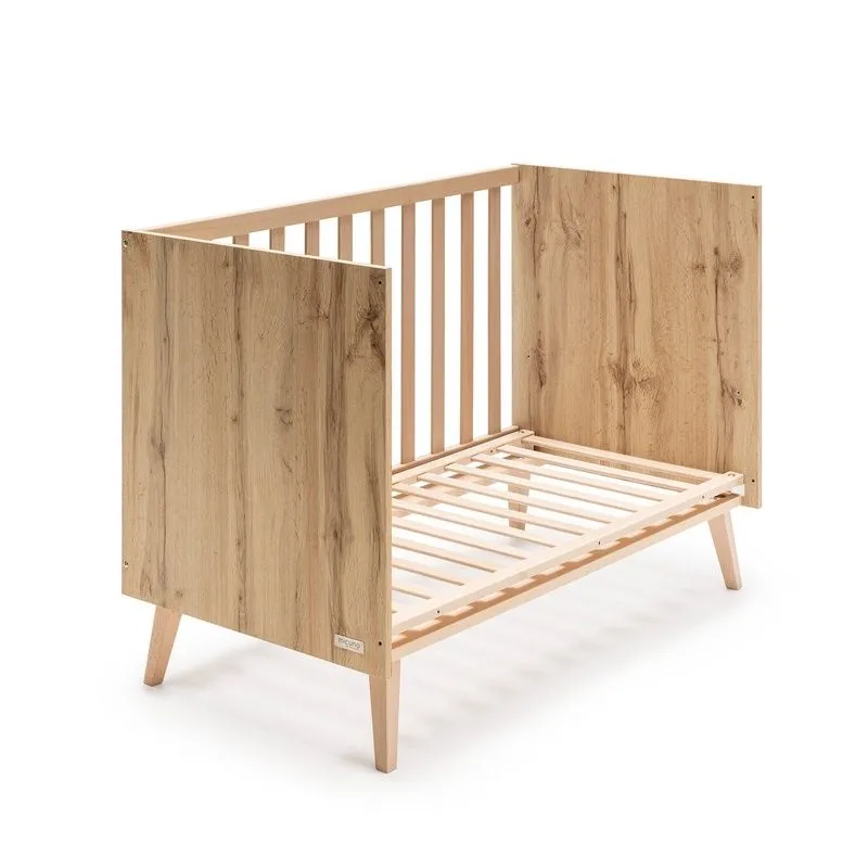 Con un acabado Roble y fabricada con maderas procedentes de bosques sostenibles, la colección Martha compuesta por cuna, armario, bañera y cómoda a la que le puedes añadir su cambiador, será el centro de atención de toda habitación. La cuna de 120x60, está diseñada para acompañar a tu bebé a medida que se hace mayor.