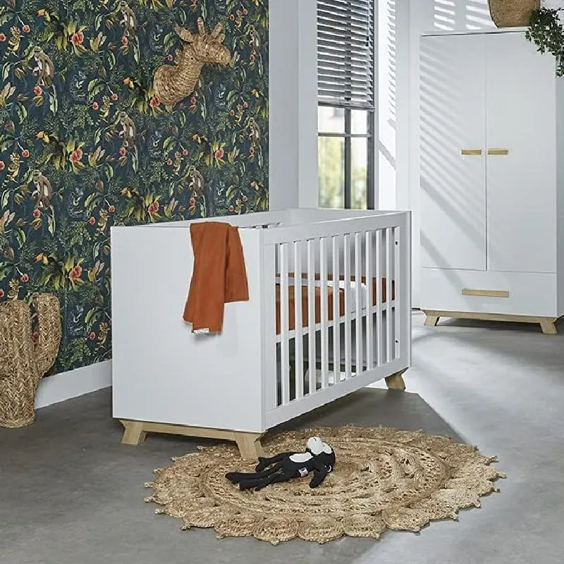 La cuna Veneto de 60x120 cm de Ikid Ateliers T4 es la elección perfecta para quienes buscan un diseño nórdico moderno y elegante para la habitación de su bebé. Fabricada íntegramente en MDF blanco, con patas de madera natural, esta cuna combina estilo y funcionalidad.