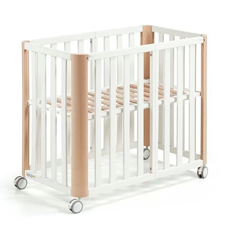 Diseño pensado para el colecho: El lateral desmontable sin herramientas permite acercar la minicuna a la cama de los padres con total seguridad.