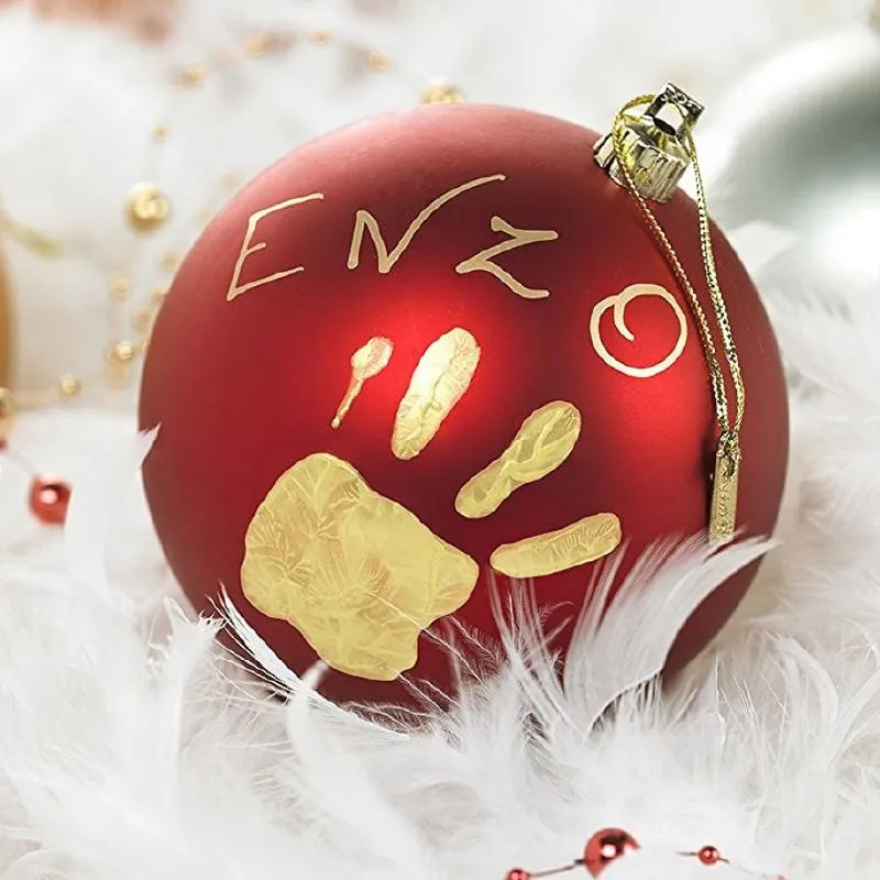 La Bola de Navidad Baby Art - Roja es una decoración navideña única que se puede personalizar con la adorable huella de mano y el nombre del bebé. Es un artículo especial que colgará del árbol con placer y emoción cada año, creando recuerdos inolvidables.