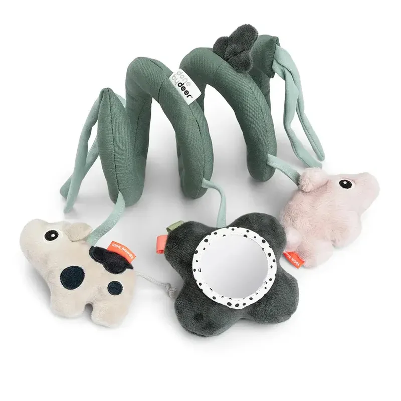 La espiral de actividades Done by Deer con temática de granja está diseñada para estimular los sentidos del bebé mientras juega en movimiento. Su estructura flexible y sus elementos interactivos fomentan el desarrollo sensorial desde los primeros meses.