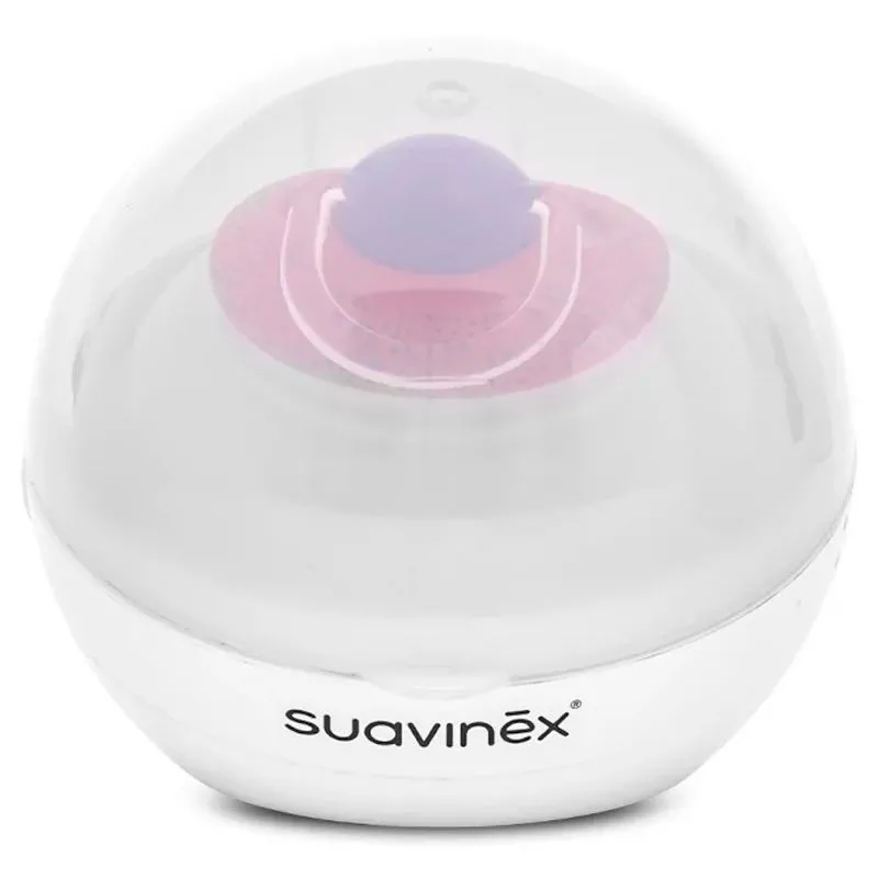 El esterilizador de chupetes Duccio de Suavinex es un pequeño aparato que esteriliza en 3 minutos el chupete y la tetina. Es el único esterilizador de chupetes con rayos UV, seguro, higiénico y práctico de llevar, puede funcionar con 3 pilas (AAA) y ahora también funciona con corriente continua. Gracias a la nueva melodía se notifica a la madre cuando la esterilización está lista. Duccio representa un verdadero avance tecnológico, con una eficacia garantizada del 99,9% y sin necesidad de productos químicos ni de vapor hirviendo. Duccio elimina los gérmenes, virus y bacterias de los chupetes.