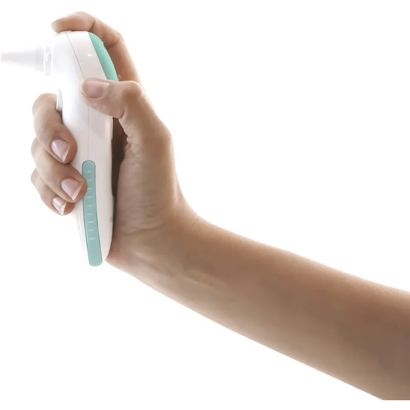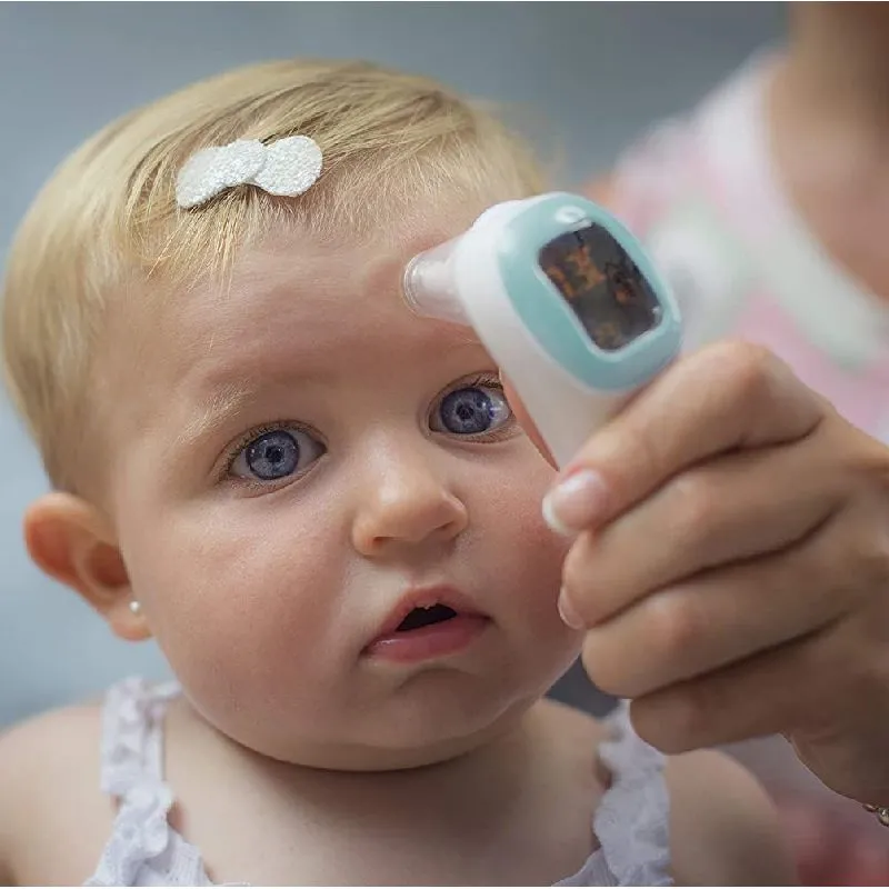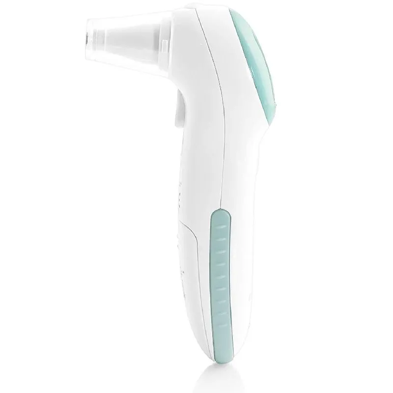 Mide la temperatura por infrarrojos, en tan solo 1 segundo en contacto con la frente o el oído del bebé.