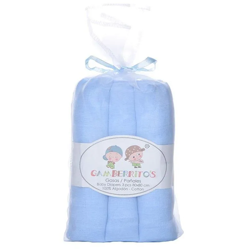 Juego de 3 Gasas Azules de 80x80 de Gamberritos