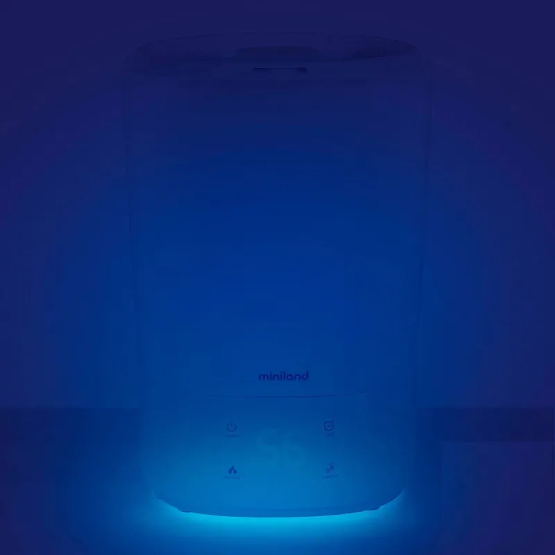 Aromaterapia para mayor descanso y luz azul de compañía. Permite el uso directo de esencias en el depósito de agua e incorpora una suave luz azul de compañía, cuyo encendido es opcional según las preferencias del bebé.