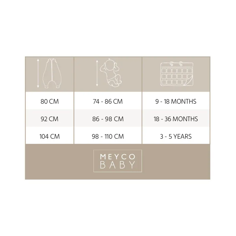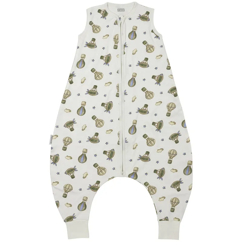 Con el pijama-saco con piernas Air Balloons de Meyco Baby, tu peque no solo dormirá profundamente, ¡sino que también podrá explorar! Este mono tiene un estampado unisex de globos aerostáticos, estrellas y nubes. ¡Perfecto para nuestros pequeños exploradores! ¿Qué tiene de especial un pijama-saco con piernas? Tu peque disfruta de la sensación cálida y segura de un saco de dormir, pero puede seguir descubriendo el mundo a su alrededor gracias a las perneras. El suave tejido de algodón resulta súper cómodo y es maravillosamente transpirable, ideal para los días calurosos de verano. Y también es perfecto durante las noches suaves de primavera y otoño. Solo tienes que combinarlo con un pijama calentito y dejar que tu peque sueñe con grandes aventuras mientras duerme. El pijama-saco con piernas de Meyco Baby está confeccionado con tejido de punto jersey de algodón 100% extra suave, lo que lo hace cómodo y agradablemente transpirable. En este diseño, cada pierna tiene su espacio, lo que da a tu pequeño durmiente libertad de movimiento. Muy práctico y seguro cuando tu peque ya empieza a caminar o ponerse de pie. La cremallera larga en la parte inferior facilita cambiar al bebé y poner o quitar el pijama-saco rápidamente. El pijama-saco tiene un valor TOG de 0.5. Cuanto mayor es el valor TOG, más cálido es el producto para tu peque.