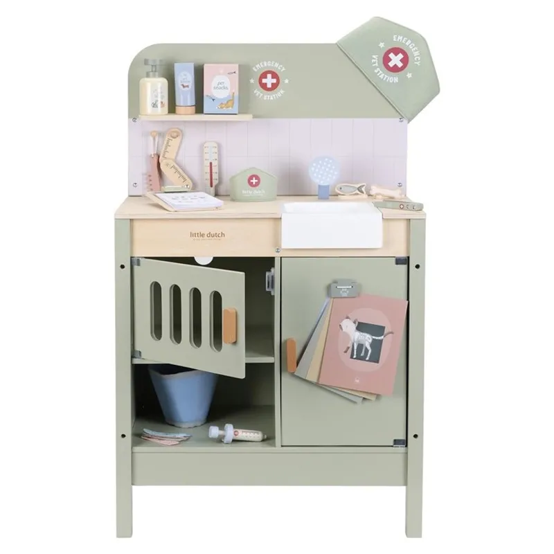 La clínica veterinaria de madera es un juguete ideal para fomentar el juego simbólico y despertar la imaginación de los pequeños amantes de los animales. Gracias a su diseño detallado y sus múltiples accesorios, los niños podrán asumir el rol de veterinarios y cuidar a sus mascotas de juguete como verdaderos profesionales.