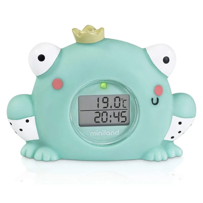 Termómetro de baño Thermo Bath Magical de Miniland con forma de sapo de color verde.