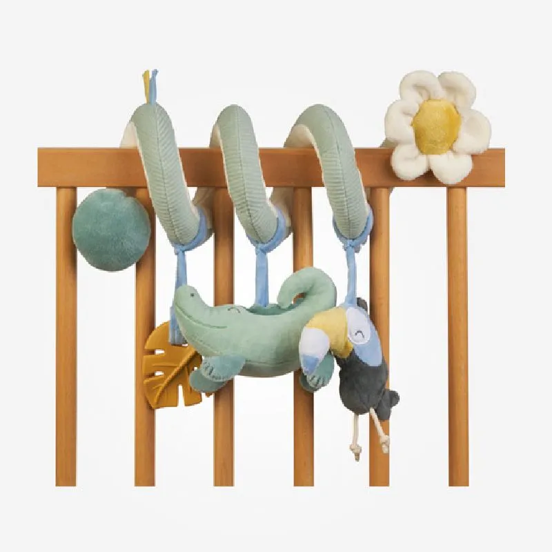 Fabricada con tela blandita y suave, esta espiral presenta coloridos sonajeros que captarán la atención de tu bebé y lo mantendrán entretenido mientras explora y descubre nuevas sensaciones. Su fácil sistema de sujeción permite enrollarla fácilmente en la cuna, la sillita de paseo o cualquier otro lugar, brindando diversión y estimulación dondequiera que vayas.