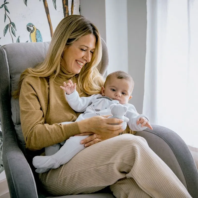 La mecedora Mar ofrece una amplia comodidad y confort tanto para el descanso como para el momento de las tomas. Su pie giratorio permite coger objetos cercanos sin tener que incorporarte. Además no necesita balancín, ya que dispone de un sistema pendular con el que podrás balancear y mecer a tu bebé.