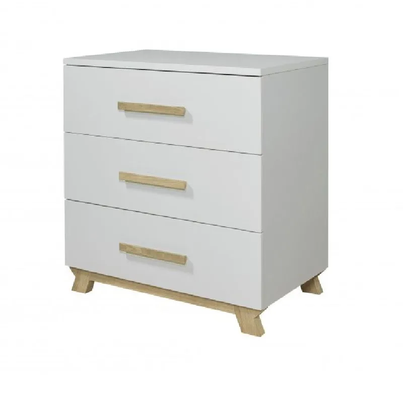 La Cómoda Cambiador Veneto ofrece un diseño nórdico elegante y práctico, ideal para la habitación de tu pequeño. Con un acabado en blanco y patas y tiradores en madera natural, esta cómoda se integra perfectamente con la cuna o maxicuna de la misma colección.