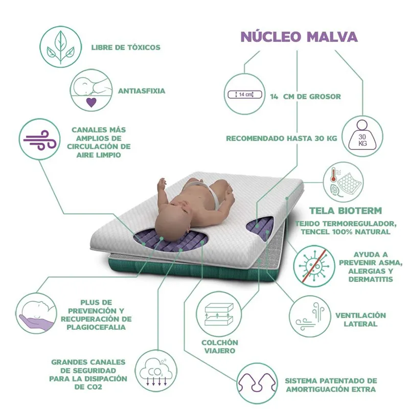 Un colchón innovador, seguro y adaptable, diseñado para acompañar el crecimiento del bebé con el máximo confort tanto en casa como durante los viajes.