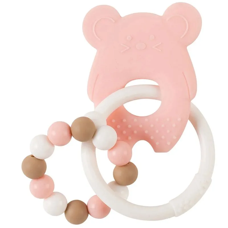 A Coleção Silicone oferece designs simples e elegantes, feitos com materiais de alta qualidade e acabamentos refinados. O mordedor - com o animalzinho e a pulseira de pérolas - acompanha o bebê quando os primeiros dentes de leite começam a sair. As diferentes superfícies texturizadas e as bolas de silicone convidam os bebés a mastigar, aliviando a dor nas gengivas.