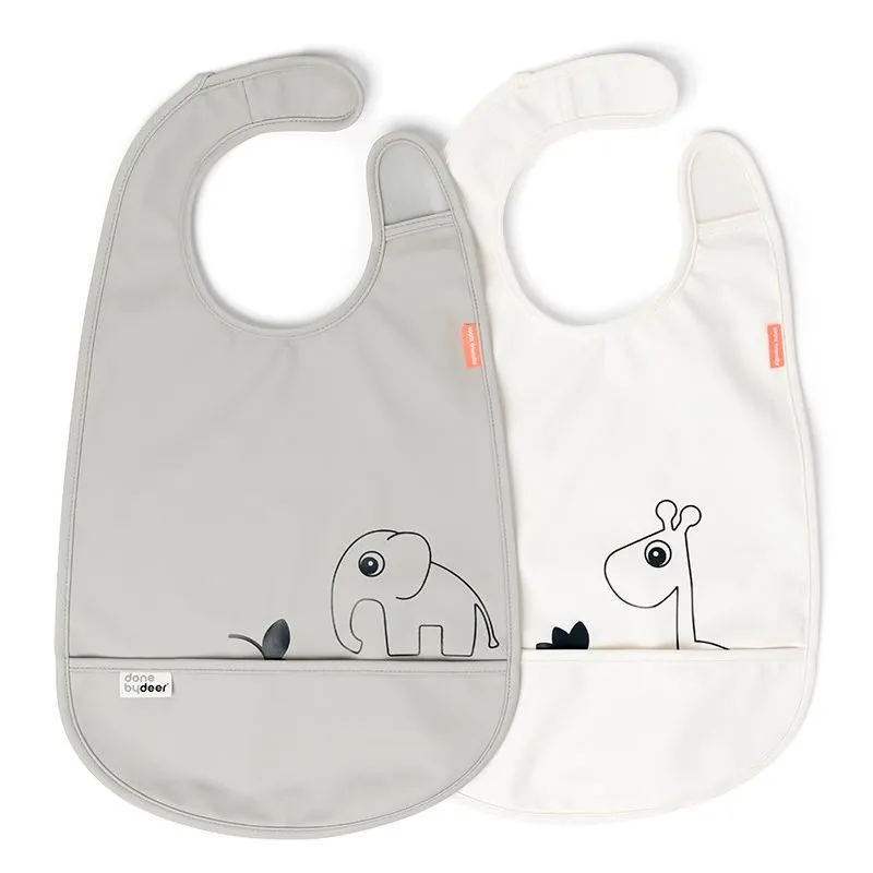 Dois dos teus amigos favoritos do Deer estão prontos para tornar a hora do almoço menos desordenada. Ambos são elegantes e práticos, são impermeáveis, fáceis de limpar e o bolso recolhe a comida que se perde, poupando muito tempo de limpeza.