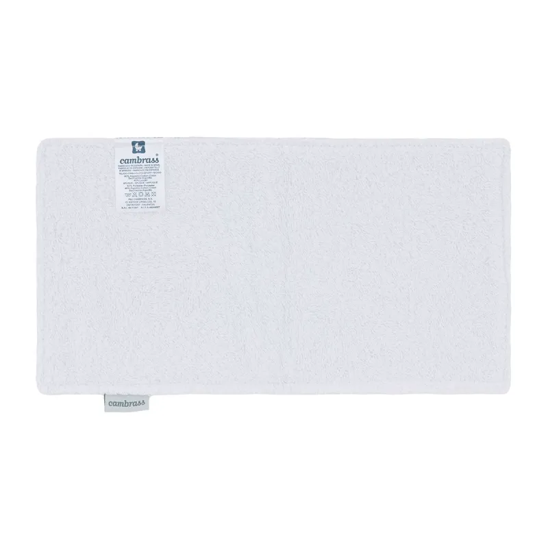 O babete da Cambrass tem forma retangular e é feito de fibras TENCEL™. Fabricado em Espanha. Por Cambrass.