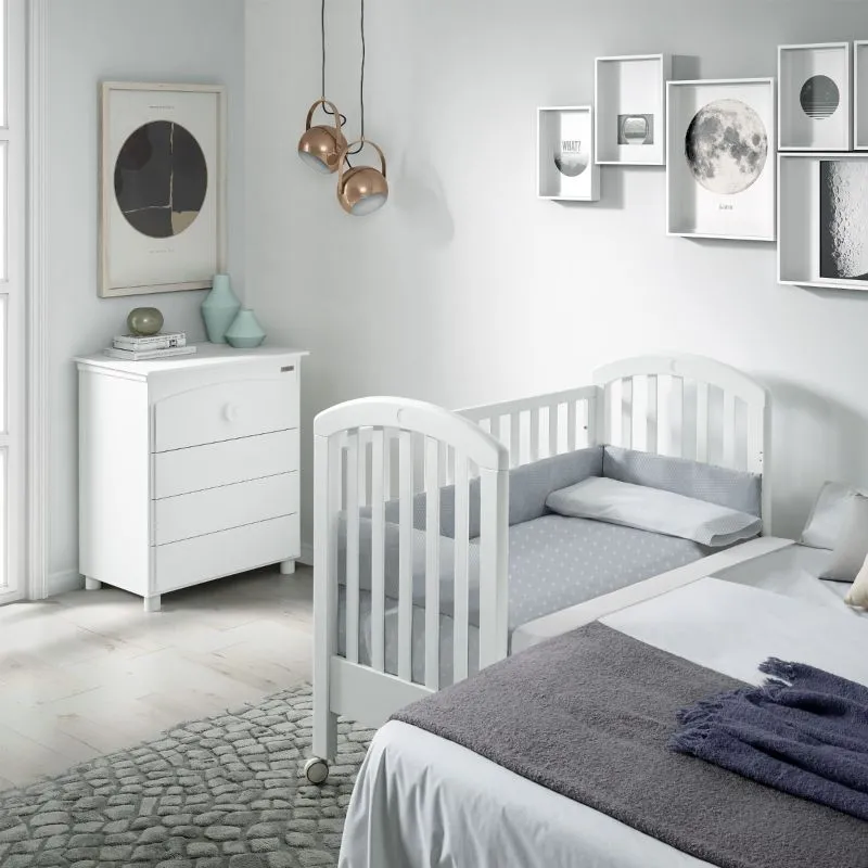 O Kit de Berço Cama permite que durma tranquilamente perto do seu bebé sempre que quiser. Inclui fitas de fixação, batentes de ajuste, colchonete estofado e base de união entre a cama e o berço.