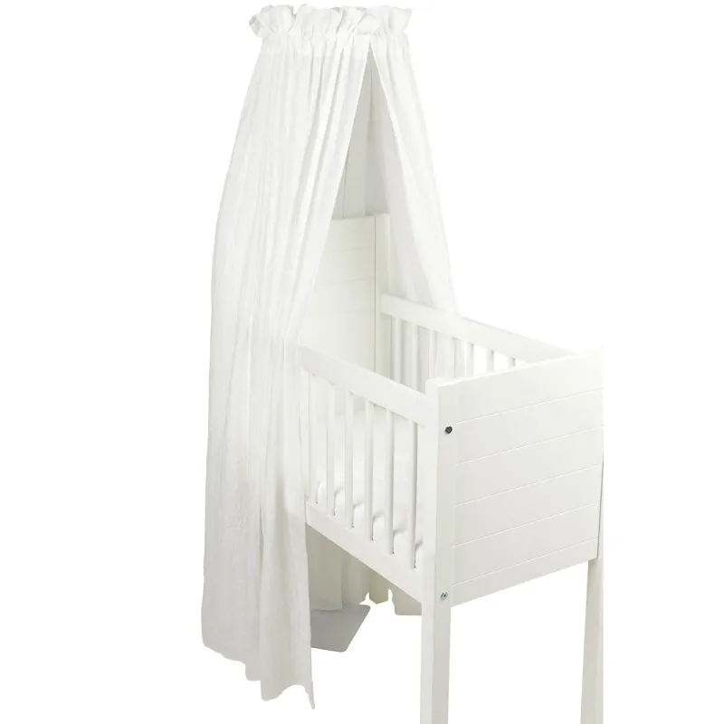 O dossel do mini berço cria um acento elegante e atmosférico sobre a cama, proporcionando uma sensação de segurança adicional ao seu pequeno (não inclui a estrutura). O véu é feito de 20% de algodão e 80% de poliéster.