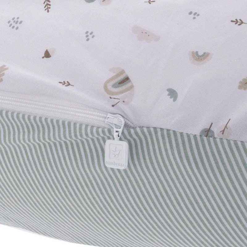 A almofada de lua de Cambrass, é um complemento ideal durante a gravidez e um item indispensável durante a amamentação. Seu design é muito parecido com a lua crescente. Nos meses de gravidez, o seu enchimento especial de micro pérolas torna-o 100% adaptável a qualquer fase da gravidez. Depois, no aleitamento, é perfeito. O artigo é desfundível se quiser lavar a parte exterior, o interior vem com um tecido hidrofóbico que o torna impermeável e que não podem passar as possíveis gotas de leite. É também um apoio perfeito para o bebê sempre com vigilância materna / Patern. Este artigo é perfeito para a mãe e o bebé e é 100% fabricado na Espanha.