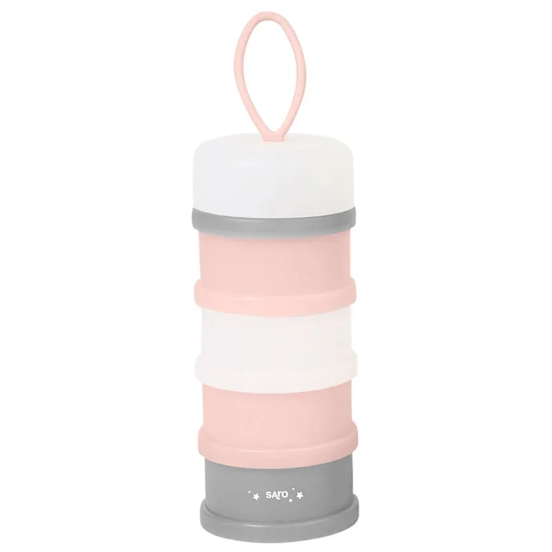 Um recipiente perfeito para levar a dose exacta de leite em pó e cereais.