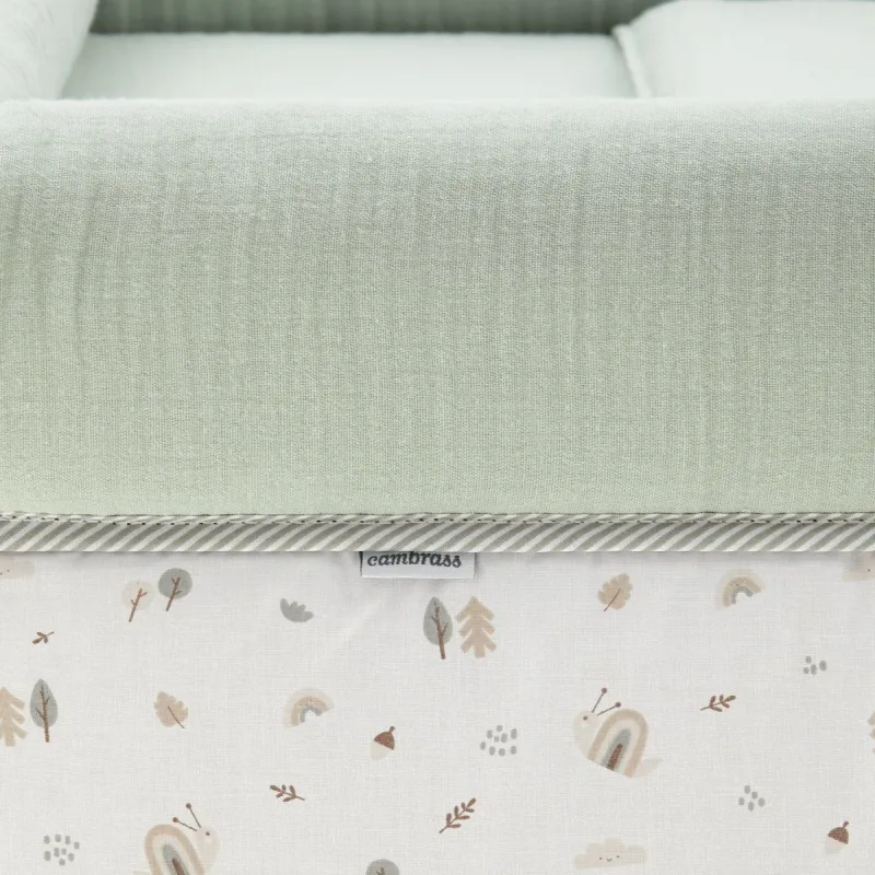 A minicuna com estrutura em forma de lâmina de Cambrass é fabricada em madeira de abóbora. Permite que o bebé descanse em qualquer parte da casa durante os primeiros meses de vida graças à mobilidade que lhe proporcionam as rodas (com travão). Outros aspectos que tornam especialmente funcional esta minicuna, inclui almofada, colchão e somier de madeira de 5mm, suporte de madeira e seu vestuário costurado que inclui a colcha com preenchimento removível para lavagem ou para uso inverno / verão. .Não . Por recomendação da norma europeia (EN 1130 UNE-EN 11890:2018) e do Real Decreto 1801/2003 relativo à segurança geral dos produtos, a minicuna não pode ser dobrável. De acordo com as normas, este produto suporta bebés com um peso de até 14 kg