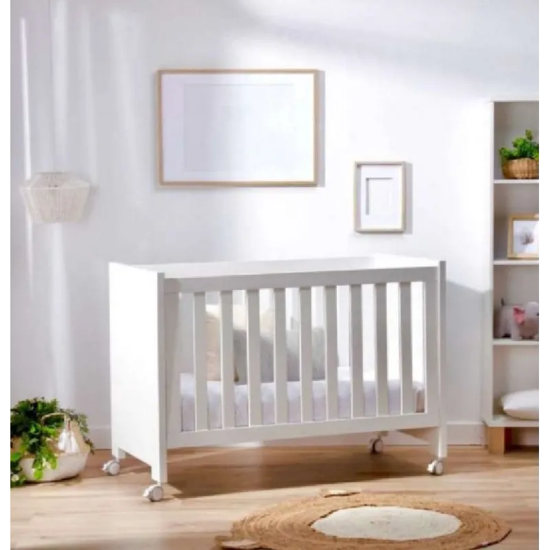 Além disso, a cama possui um conjunto de 4 rodas com travão, o que permite movê-la facilmente pelo quarto e fixá-la com segurança no lugar. Seu tamanho compacto é ideal para quartos pequenos, sem comprometer o conforto do bebê.