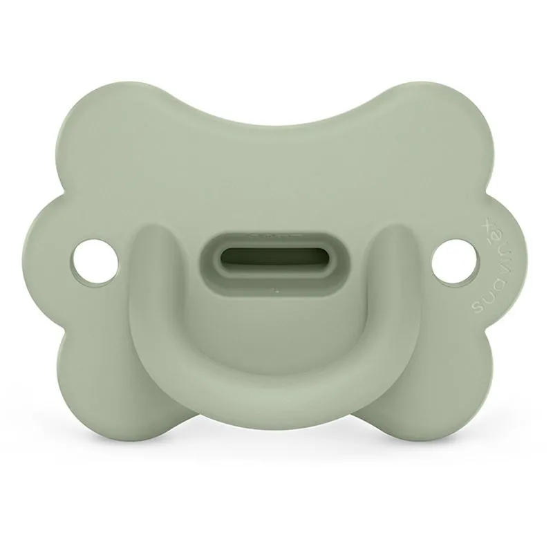 Fabricado em 100% silicone ultrassuave, imita a textura e flexibilidade do peito materno. Seu acabamento aveludado é agradável ao toque e não irrita a pele sensível do bebê. Foi projetado para se ajustar perfeitamente ao paladar, sem interferir no movimento natural da língua.