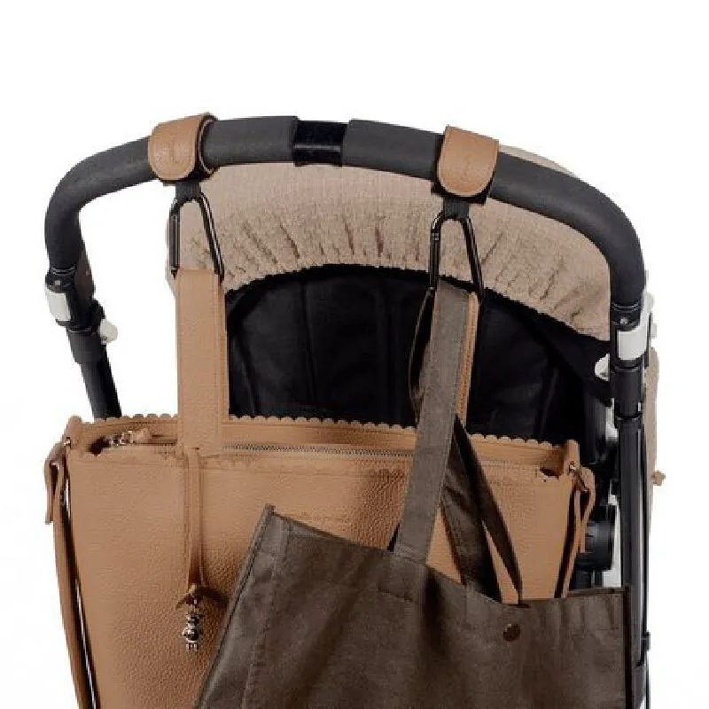 O conjunto de 2 ganchos para carrinho Icon da Pasito a Pasito na cor Caramelo é uma solução prática e elegante para transportar tudo o que precisa durante os seus passeios com o carrinho. Fabricados em metal resistente e revestidos de polipele, estes ganchos não só são duráveis, como também adicionam um toque de estilo ao seu carrinho.