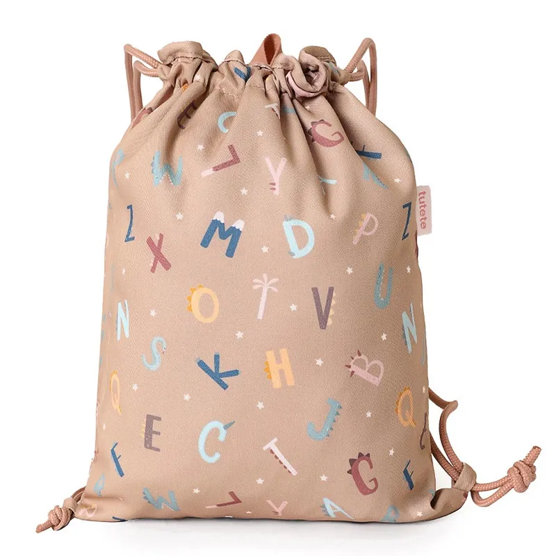 A mochila saco de tela da Tutete é perfeita para os pequenos que começam na creche ou escola infantil. Leve, prática, é ideal para levar a muda, o lanche ou pequenos objetos de uso diário.