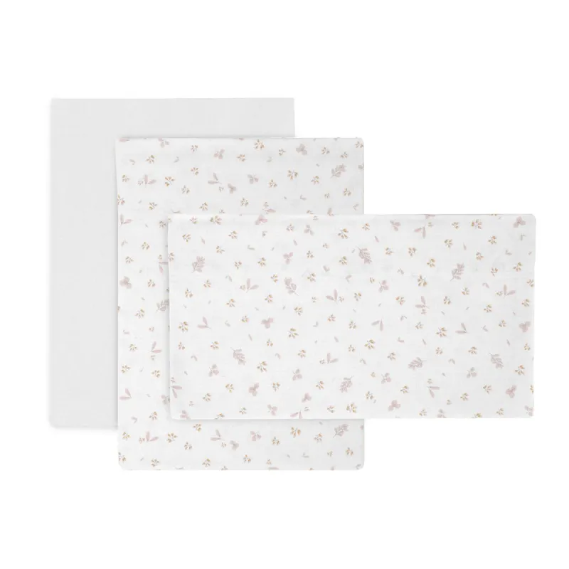 O lençol de berço de 3 peças da Cambrass é feito de 100% algodão e serve para berços de 80x120 cm. Fabricado em Espanha. Por Cambrass.
