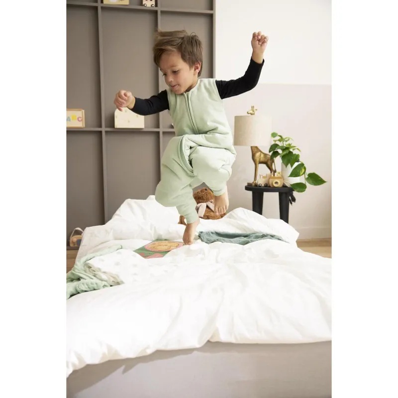 80 cm para usar de 7 a 12 meses aproximadamente e um comprimento de 69 a 80 cm. 92 cm para usar de 13 a 24 meses aproximadamente e um comprimento de 81 a 92 cm. 104 cm para crianças de 2 a 4 anos e um comprimento de 93 a 104 cm. O comprimento do seu filho é mais importante do que a idade para determinar o tamanho adequado do saco de dormir. Se o saco de dormir for muito grande, o seu bebé pode afundar-se. Nunca use um saco de dormir se a cabeça do seu pequeno couber na abertura do pescoço. Portanto, certifique-se sempre de usar o saco de dormir do tamanho adequado. Grande liberdade de movimentos graças às duas pernas. Ajuste longo, para que os bebés possam colocar os pés nas pernas durante a noite. Mais segurança assim que o seu pequeno começar a ficar de pé e a andar. 100% algodão: para um clima perfeito para dormir. Disponível em vários tamanhos. Não use demasiado detergente (também é melhor para o meio ambiente). Pode ser lavado à máquina a 30 graus no máximo. Após a lavagem, use uma bola de secar para soltar bem o enchimento.