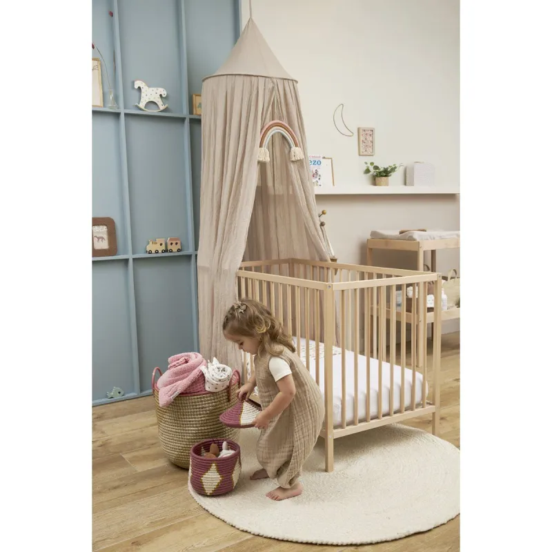 Está disponível nos seguintes tamanhos: 80 cm para uso de 7 a 12 meses aproximadamente e um comprimento de 69 a 80 cm. 92 cm para uso de 13 a 24 meses aproximadamente e um comprimento de 81 a 92 cm. 104 cm para crianças de 2 a 4 anos e um comprimento de 93 a 104 cm. A altura do seu filho é mais importante do que a idade para determinar o tamanho adequado do saco de dormir. Se o saco de dormir for muito grande, o seu bebé pode afundar-se. Nunca use um saco de dormir se a cabeça do seu pequeno couber na abertura do pescoço. Portanto, certifique-se sempre de usar o saco de dormir do tamanho adequado. Fabricado em 100% algodão hidrófilo pré-lavado. Grande liberdade de movimentos graças às duas pernas. Ajuste longo para que os bebés possam colocar os pés nas pernas durante a noite. Maior segurança quando o pequeno começa a ficar de pé e a andar. Óptimo conforto para dormir nos dias e noites mais quentes do verão. Boa ventilação e absorção de humidade. Secagem muito rápida. Conforto maravilhosamente suave para a delicada pele do bebé graças ao tecido de musselina. Disponível em vários tamanhos e cores. Não use demasiado detergente (também é melhor para o ambiente). Use um programa delicado quando lavar este frágil tecido hidrófilo e, se necessário, use um saco para a roupa suja para evitar recolher o tecido. Lavável à máquina a 40 graus no máximo. Adequado para secadora. Pode ser passado a ferro a temperatura média-alta.