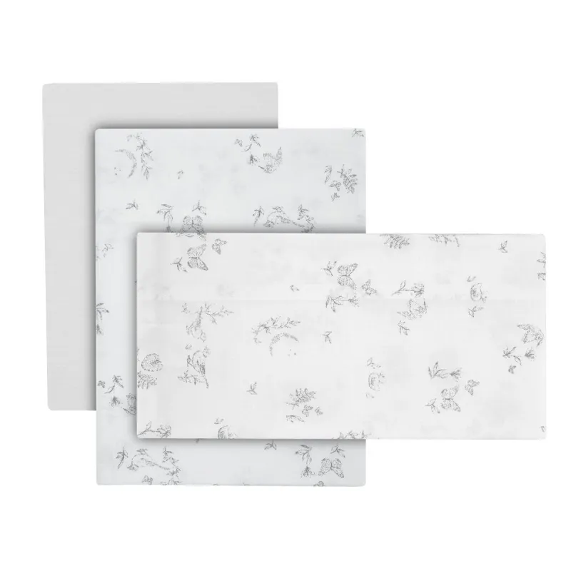 O lençol de berço de 3 peças da Cambrass para berço de 60 cm é 100% algodão. Fabricado em Espanha pela Cambrass.