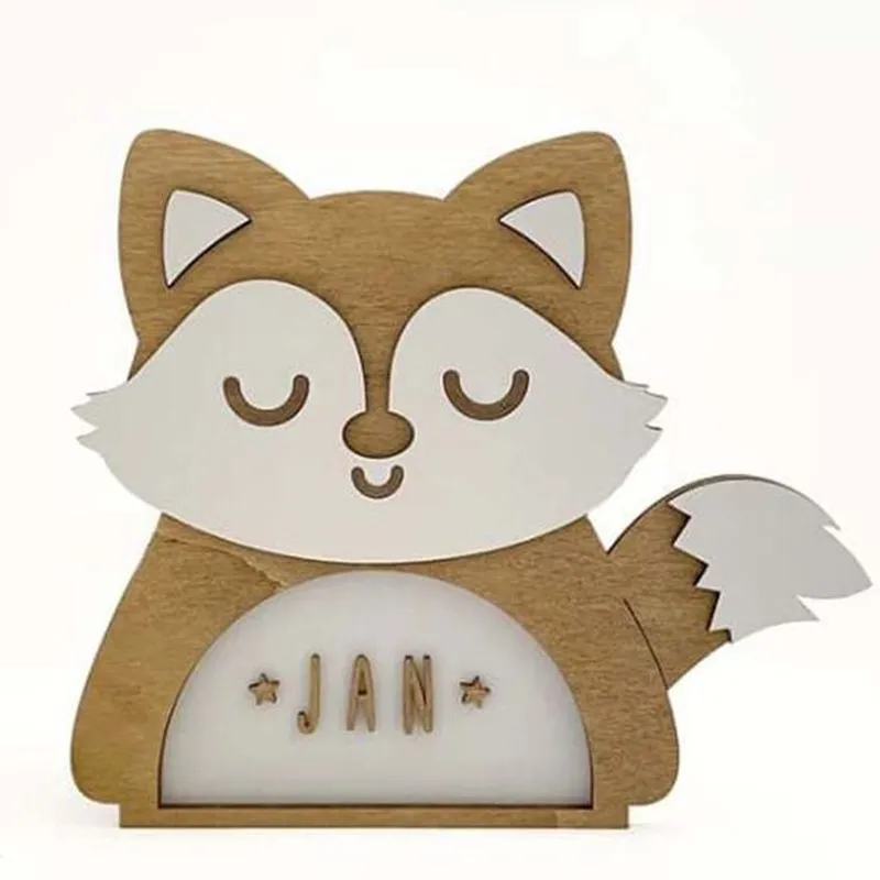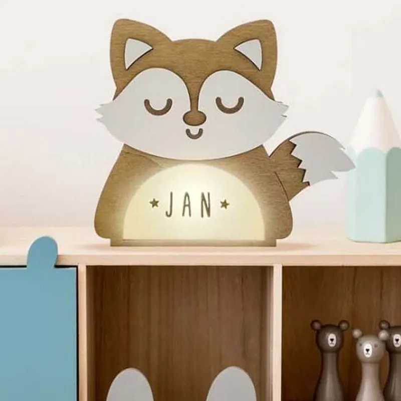 Candeeiro de presença em forma de raposa. Ao ligar, a sua barriga ilumina suavemente. Como todos os nossos produtos, podes personalizá-lo com o nome que preferires, uma vez que inclui um conjunto de letras e...