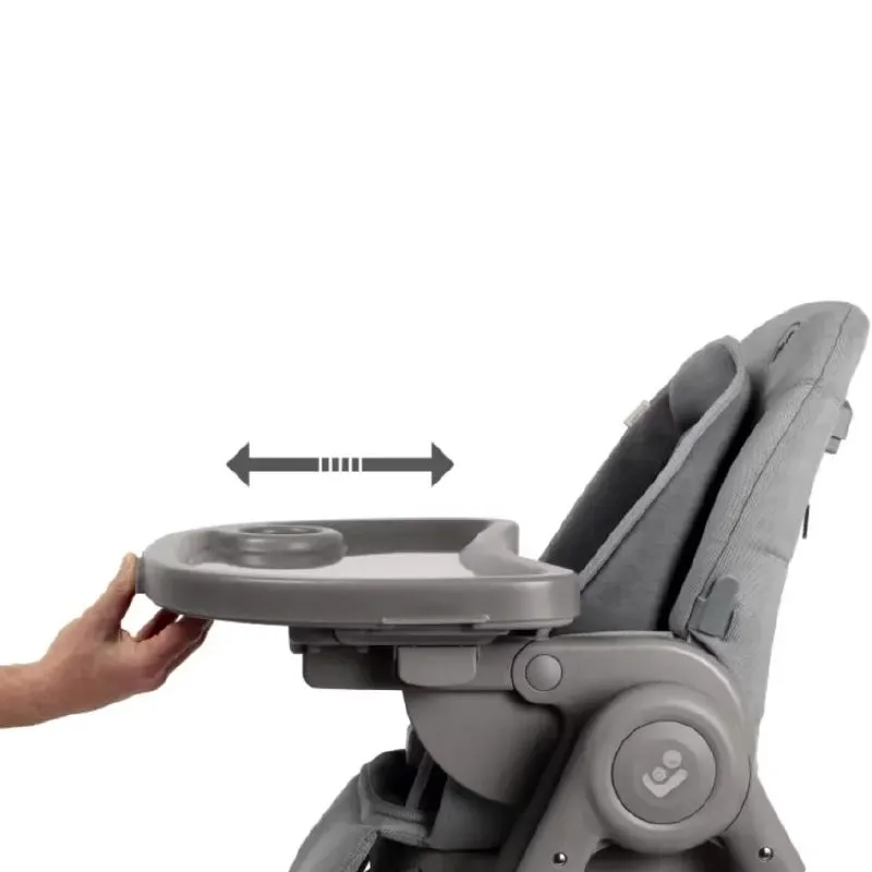 A Cadeira de Refeição Maxi-Cosi Minla Plus - Elegance Graphite é uma cadeira de refeição versátil e totalmente ajustável, projetada para simplificar os momentos à mesa e tornar mais agradáveis os momentos de brincadeira e partilha com o seu filho. Graças à sua prática bandeja giratória com uma só mão, é fácil acomodar o seu filho ou limpar rapidamente após as refeições.
